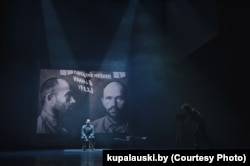 І адразу ж пачынаецца турэмная «фатасэсія». Героі па чарзе сядаюць на зэдлік для здымкаў у профіль і анфас. На белым экране сынхронна ўзьнікаюць архіўныя турэмныя фатаздымкі вязьняў канца 1930-х гадоў. Апошнім зойме месца Пісьменьнік, а на экране высьветляцца турэмныя здымкі самога Максіма Гарэцкага. Мая візуальная памяць тут жа ўзнавіла падобны фінал легендарных Пінігінавых «Тутэйшых», пастаўленых амаль чвэрць стагодзьдзя таму. А мо ў спэктаклі «Дзьве душы» хапіла б расстрэлу толькі Пісьменьніка, у чыім лёсе, пакутах і роздумах увасобіліся лёсы, пакуты і роздумы герояў ягонай аповесьці?..