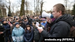 Дзяніс Садоўскі, адказны сакратар БХД фактычна ўзначаліў калёну. Кажа, галоўны мітынг будзе 25 сакавіка #дармаеды https://t.co/zfHvtAbQCJ