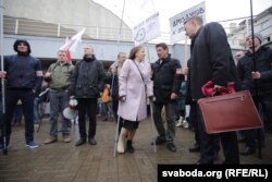 Дэпутатка Ганна Канапацкая, якая прыйшла на акцыю на мыліцах, кажа, што яе палохае, што шмат аўтазакаў і супрацоўнікаў міліцыі. Бо акцыя дазволеная. Дэкрэт № 3 павінен быць адменены. Затрыманьне Анатоля Лябедзькі ў Маладэчне яна назвала процізаконным.