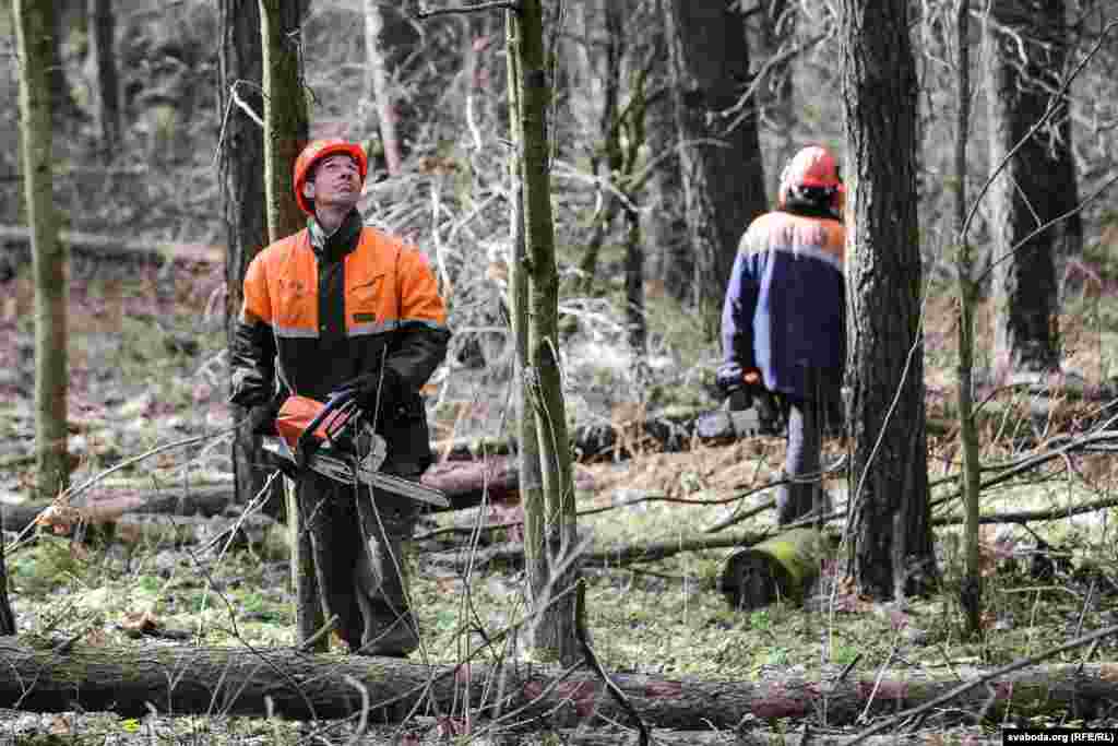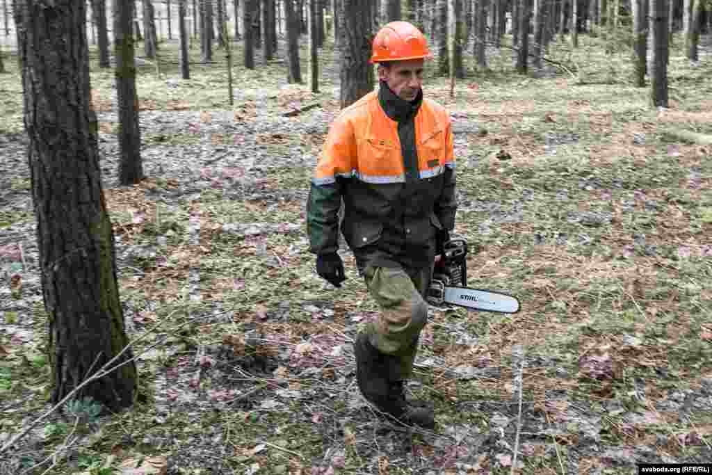 У Курапатах работнікі гаспадарчых службаў пілуюць хворыя дрэвы, а таксама зразаюць гальлё і хмызьняк.